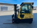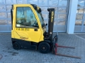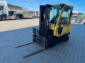 Hyster H1.6FT diesel forklift, year of manufacture: 2013, hours: only 1.299h!, previous owner: german armed forces, rated load capacity: 1.600kg, lift height: 4.450mm, triplex mast, hydr. fork positioner, hydr. sideshift, diesel engine [29kW/39p], scale: Drexel DI 47 with printer, weight: 3.500kg, ready for immediate use!