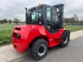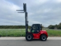 Equipped with a Stage V Deutz diesel engine, a Triplex mast offering a lifting height up to 4.8 meters, side-shift carriage, and a fully enclosed cabin with heating and air conditioning.