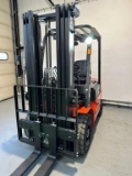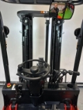 New type EP EFL 252X with triplomast 4800mm with freelift and integrated sideshift. 4th function with hoses to forkboard. Led lighting and street lighting and bleuspot. Headroom 2.21 meters. With exchangeable battery and built-in charger on 220 volts. Separate extra battery available with charger so that you can work with 1 battery and 1 battery on the charger.