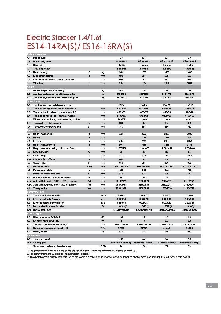 ES14-14RAS is a classic electric stacker with high performance and stability,