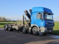 Number of axles: 4, Configuration: 8x2, Own weight: 17500 kg, Gross vehicle weight: 35000 kg, Total fuel capacity: 620 litre, Trailer coupling, Kingpin size: Special, fifth-wheel: Fixed, Diff. locks: 1, Cabin type: Space Cab, Cruise control, Tacho, Digital tachograph, Airconditioning, Parking heater, Electric windows, Electric mirrors, Color: Blue, Heated mirrors, Lighting type: Halogen lamps, Engine capacity: 340 Kw (456 Hp), Fuel type: diesel, Euro: 4, Gearbox kind: Manual, Gearbox make: ZF, Number of Gears: 16, Clutch Pedal, Power steering, ABS, PTO, PTO type: 1, Starter battery, Systemlength: 575 cm, Pump, Hook-lift height: 132, Central locking, Seats configuration: 1+1, Seat cover: cloth, Chair adjustment: Manually, Crane, Crane make: Copma 210.3, Year crane: 2008, Capacity crane: 21000, Maximum load: 2170 kg bij 8,3 m., Number of supports: 2, CE-approved, Control position: side control right, Crane position: Behind the cabin, Hydraulic extendable: 3 times, Extra hydr. conn.: none, Rotator, Hook, Crane winch
