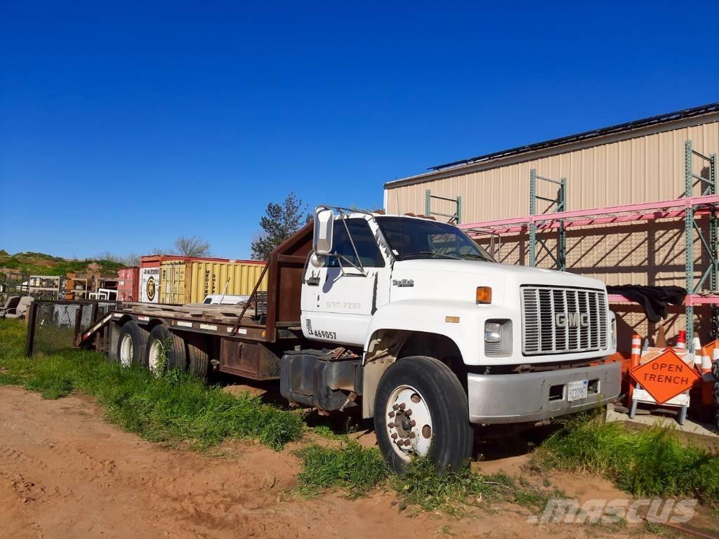 Used 1996 GMC Topkick C7 Flatbed Truck with Cat 275 Diesel Engine, 2WD, and Pusher Axle!