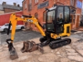 2019 JCB 16C-1 excavator with quick hitch & 4 buckets, full cab model with heater & radio, 2 speed tracking and expanding tracks.