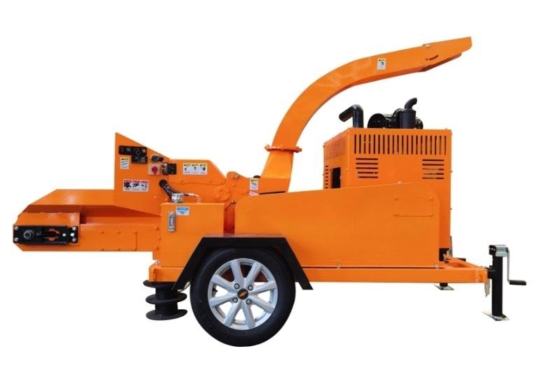 The chipper with a feeding roller of 50 cm, discharge chute height of 240 cm can be rotated 360 degrees. Large tires 215/75R15 for road transport. Machine has a 75 kW power diesel engine for smooth production with low fuel consumption for all type of small trees and branches up to 20cm. Capacity per hour > 20m3